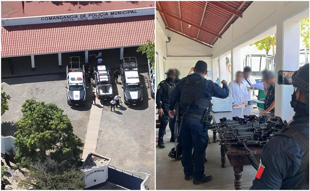La Fiscalía General del Estado de Oaxaca (FGEO), la Secretaría de la Defensa Nacional (Sedena), Secretaría de Marina (Semar), Guardia Nacional y la Policía Estatal catearon las instalaciones de la Policía Municipal de Santa María Huatulco y aseguraron armas de fuego.